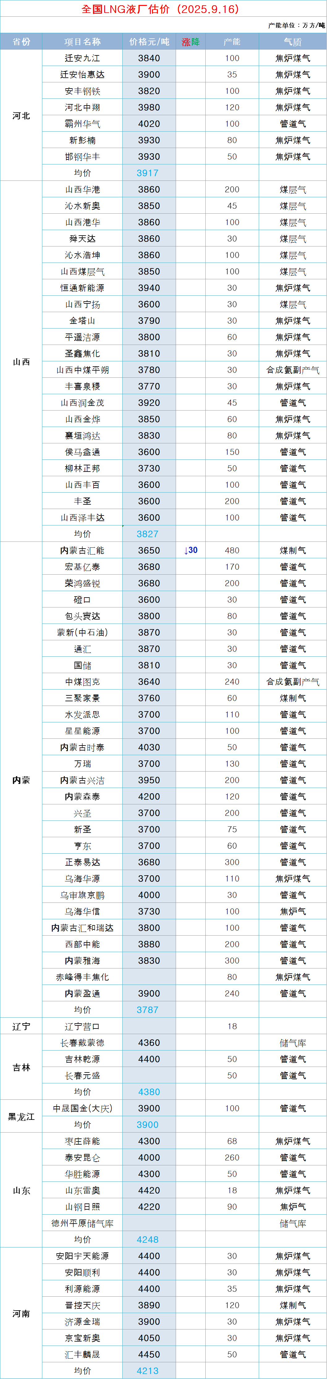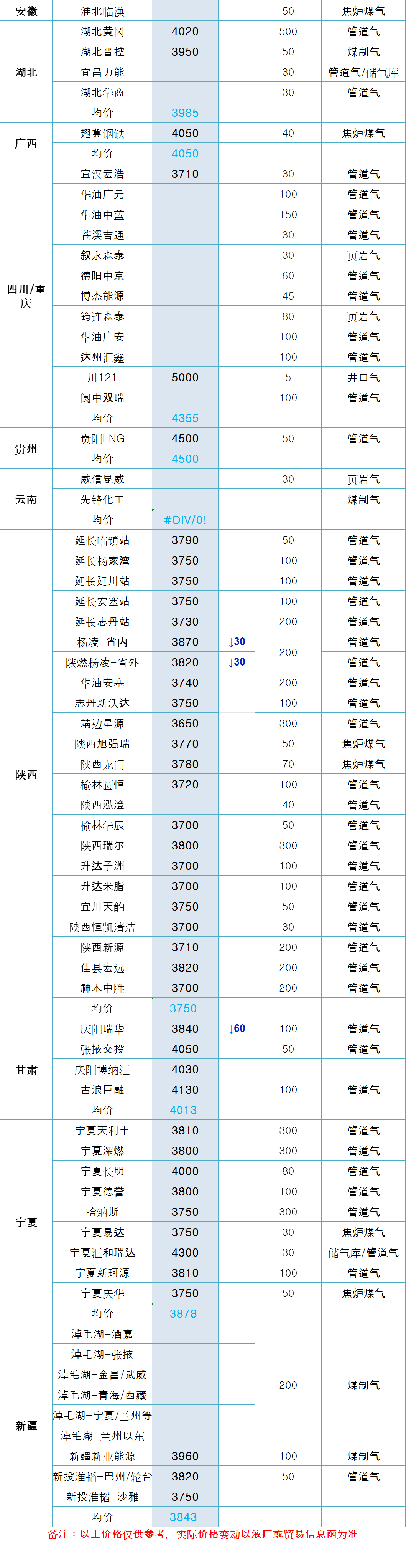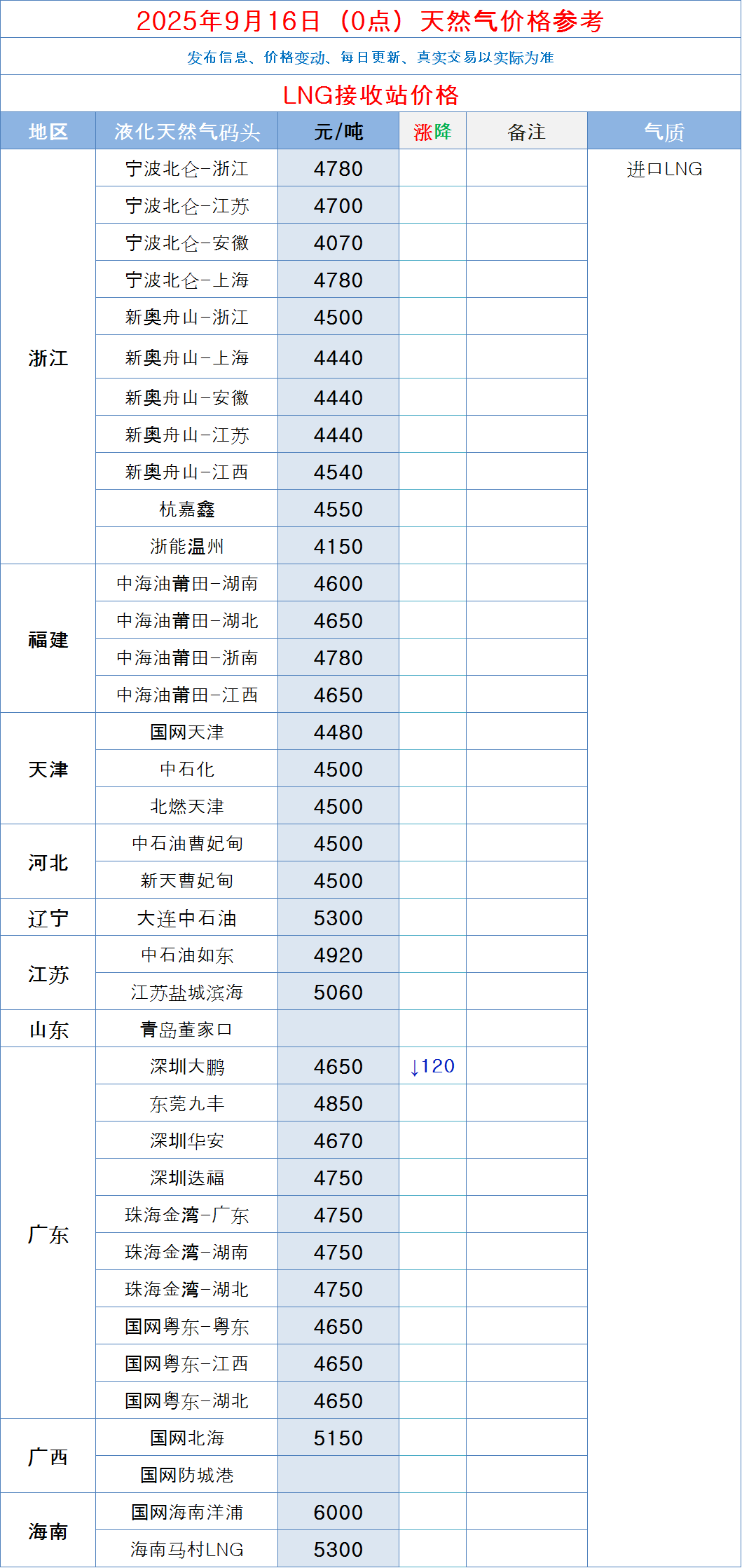 LNG天然气每日价格