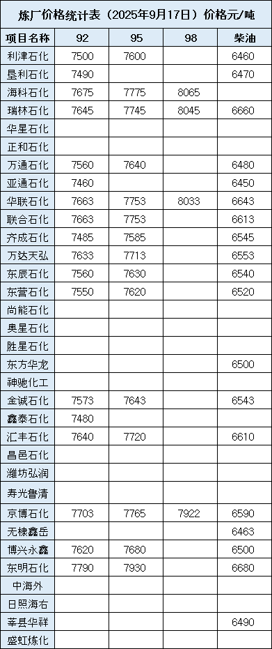 炼厂价格