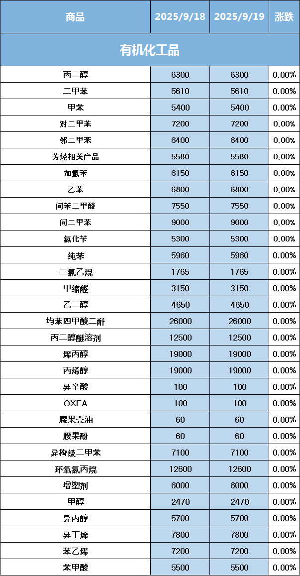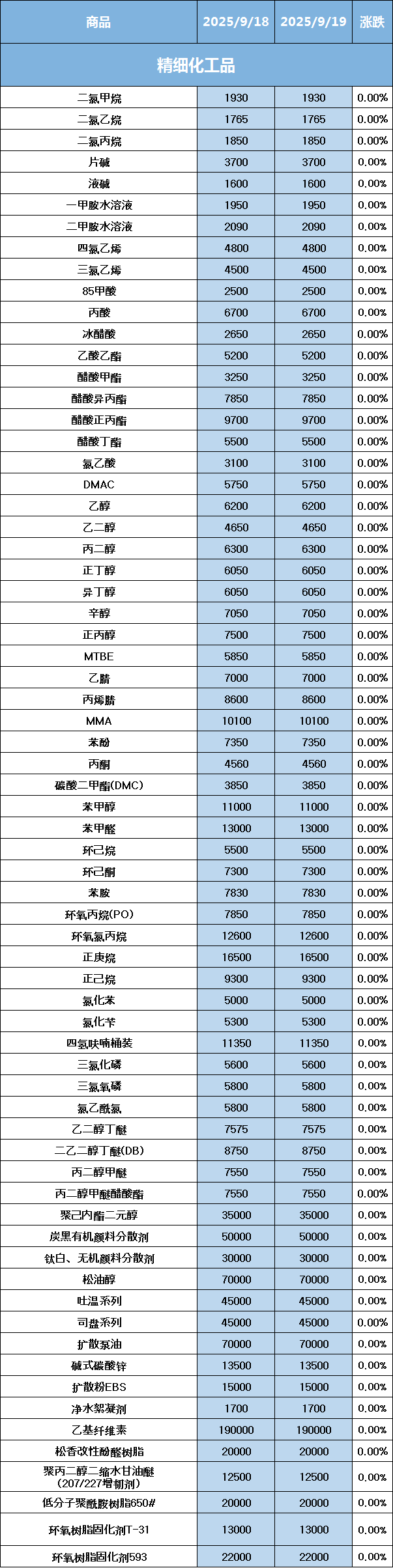 化工原料每日价格