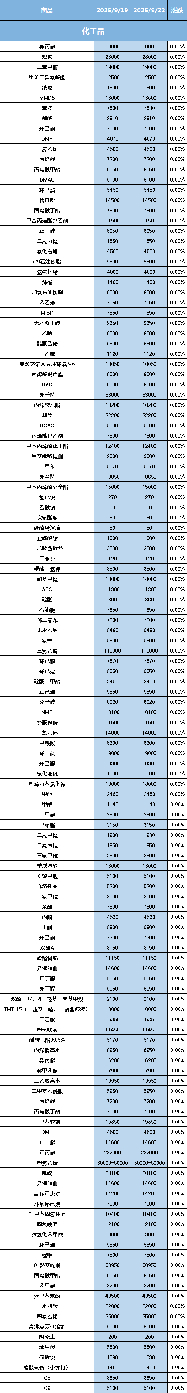 化工原料每日价格