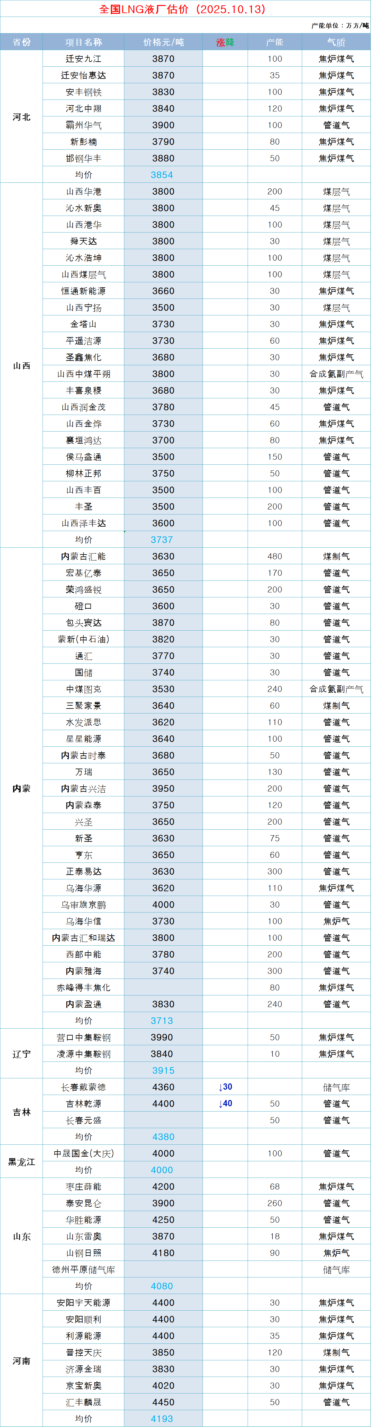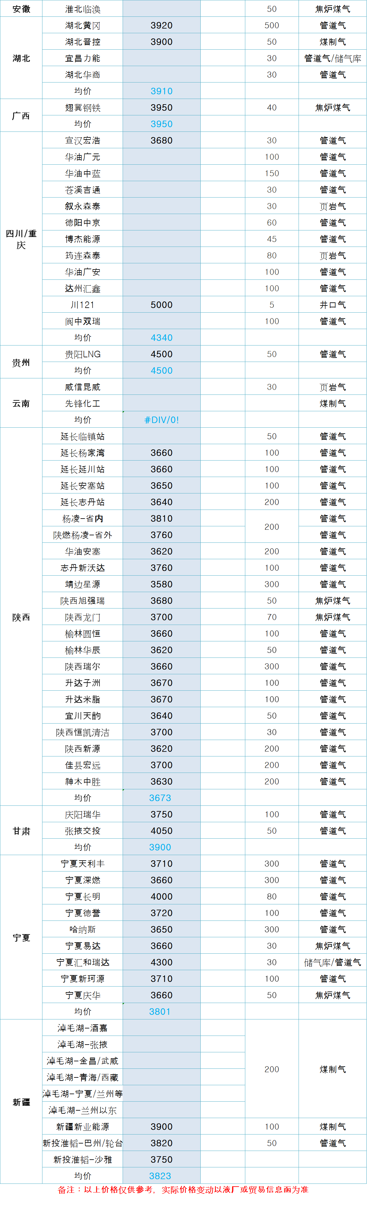 LNG天然气每日价格