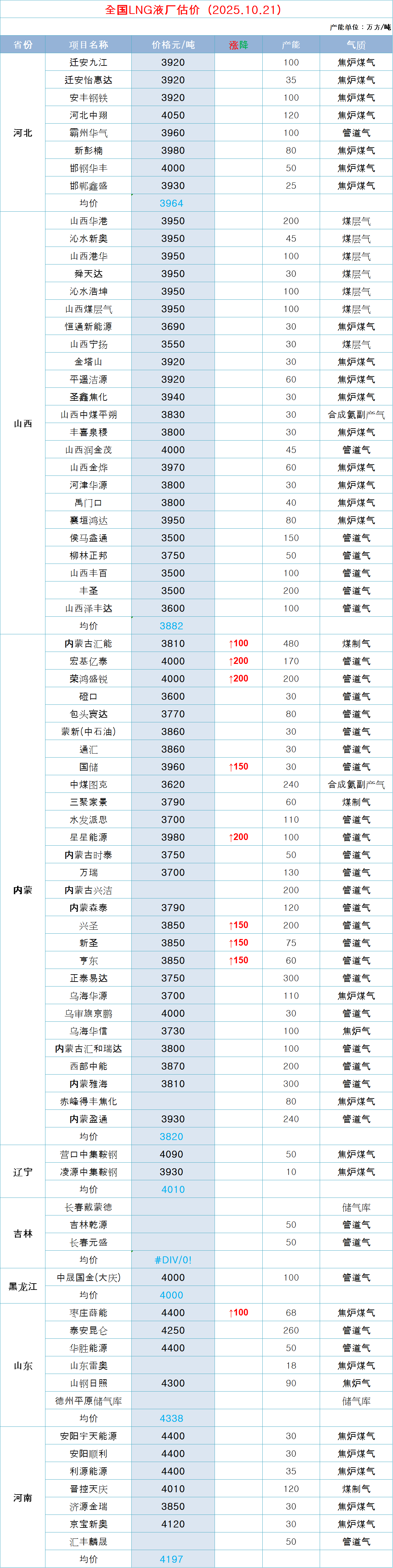 LNG天然气每日价格