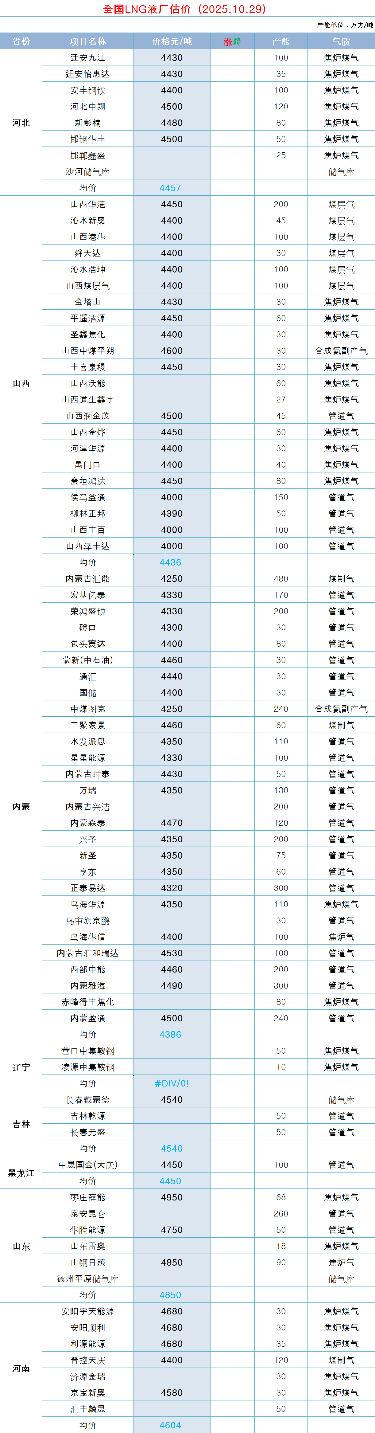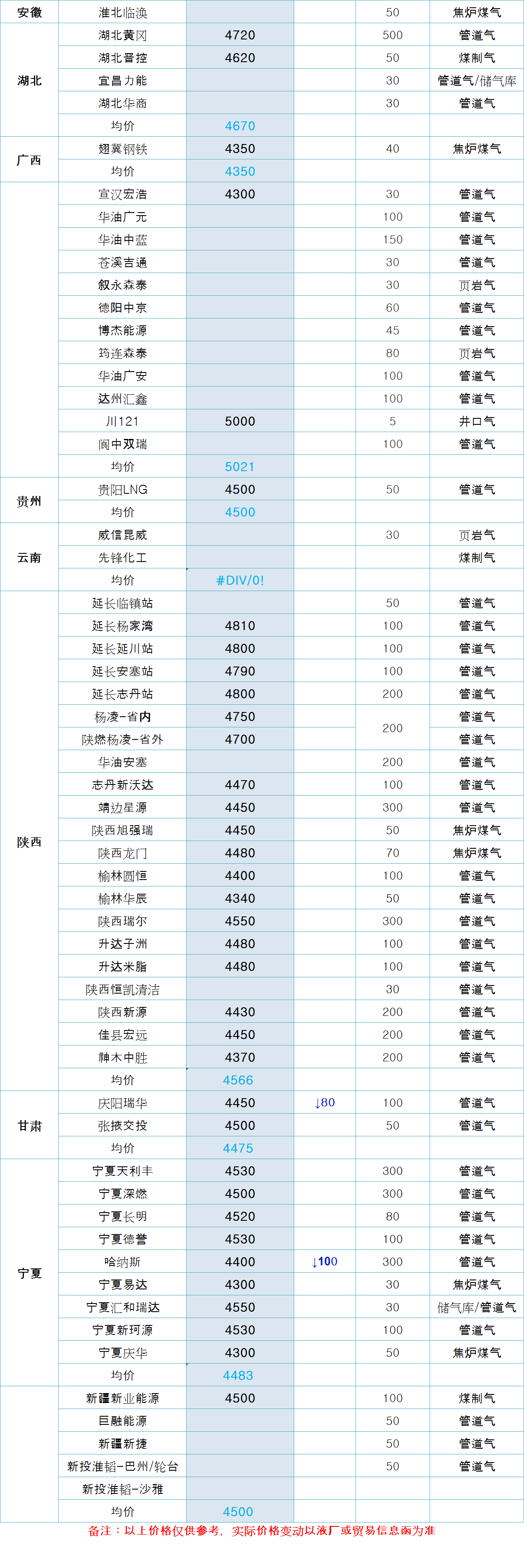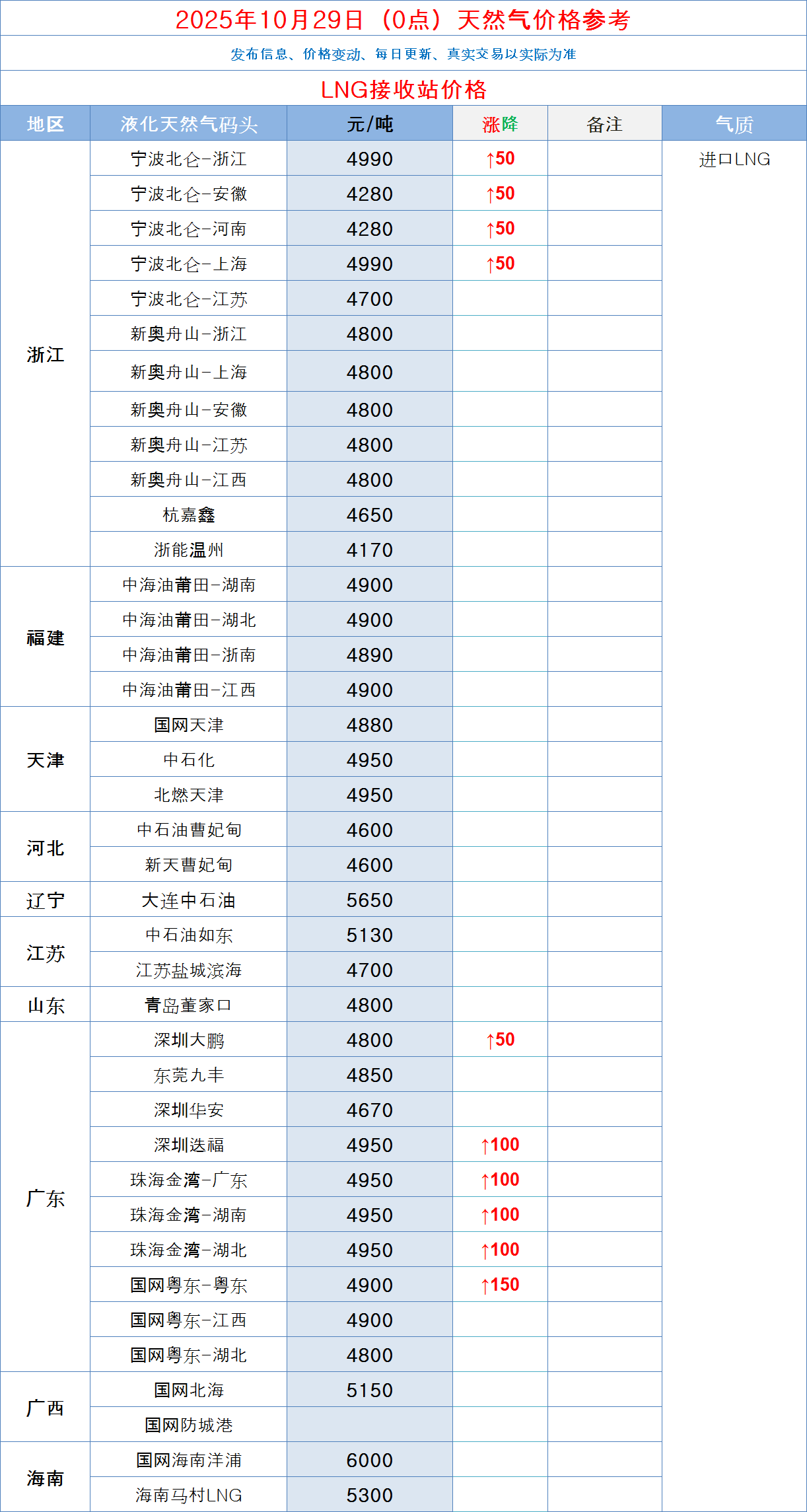 LNG天然气每日价格