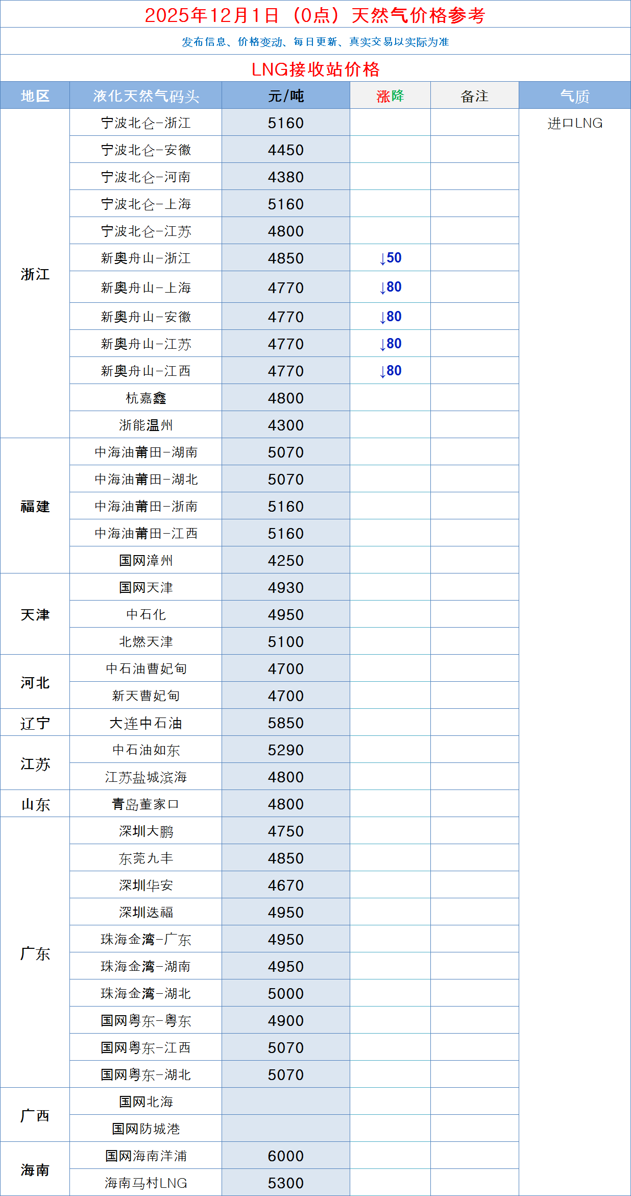 LNG天然气每日价格