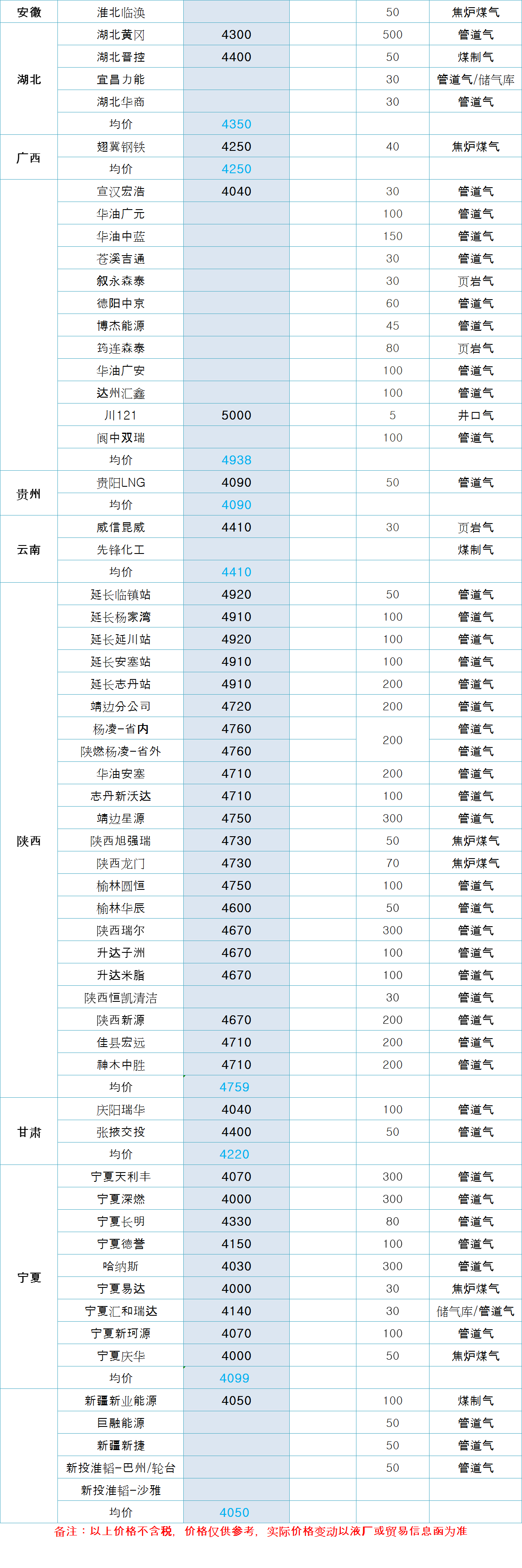 LNG天然气每日价格