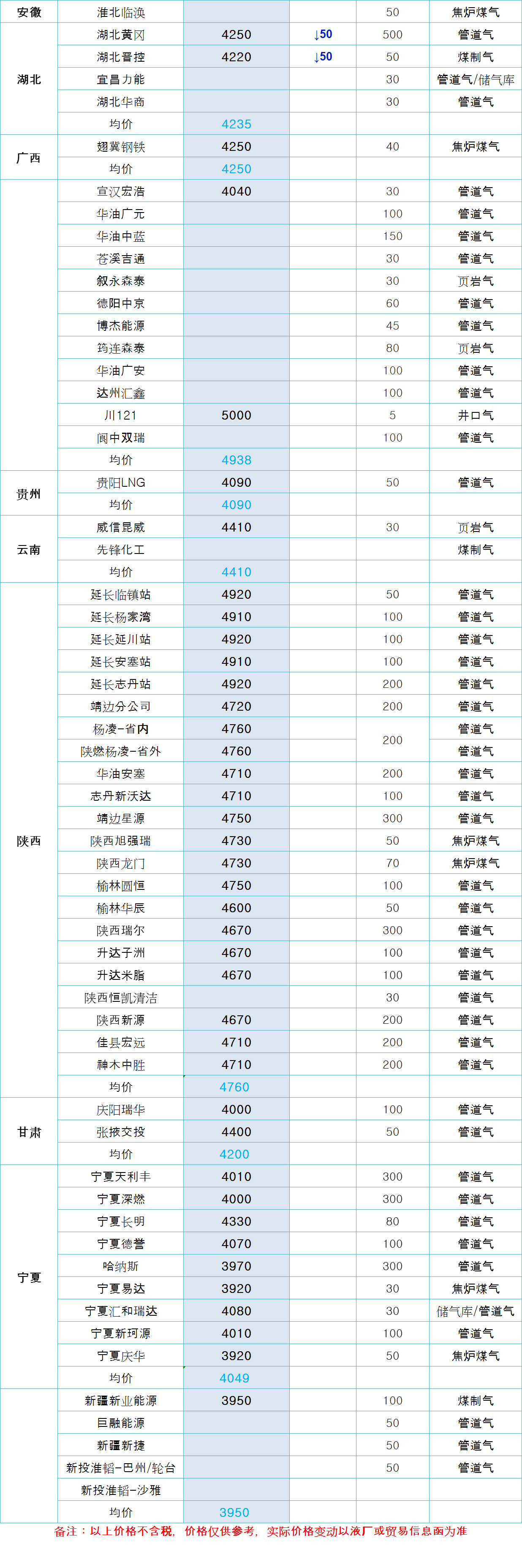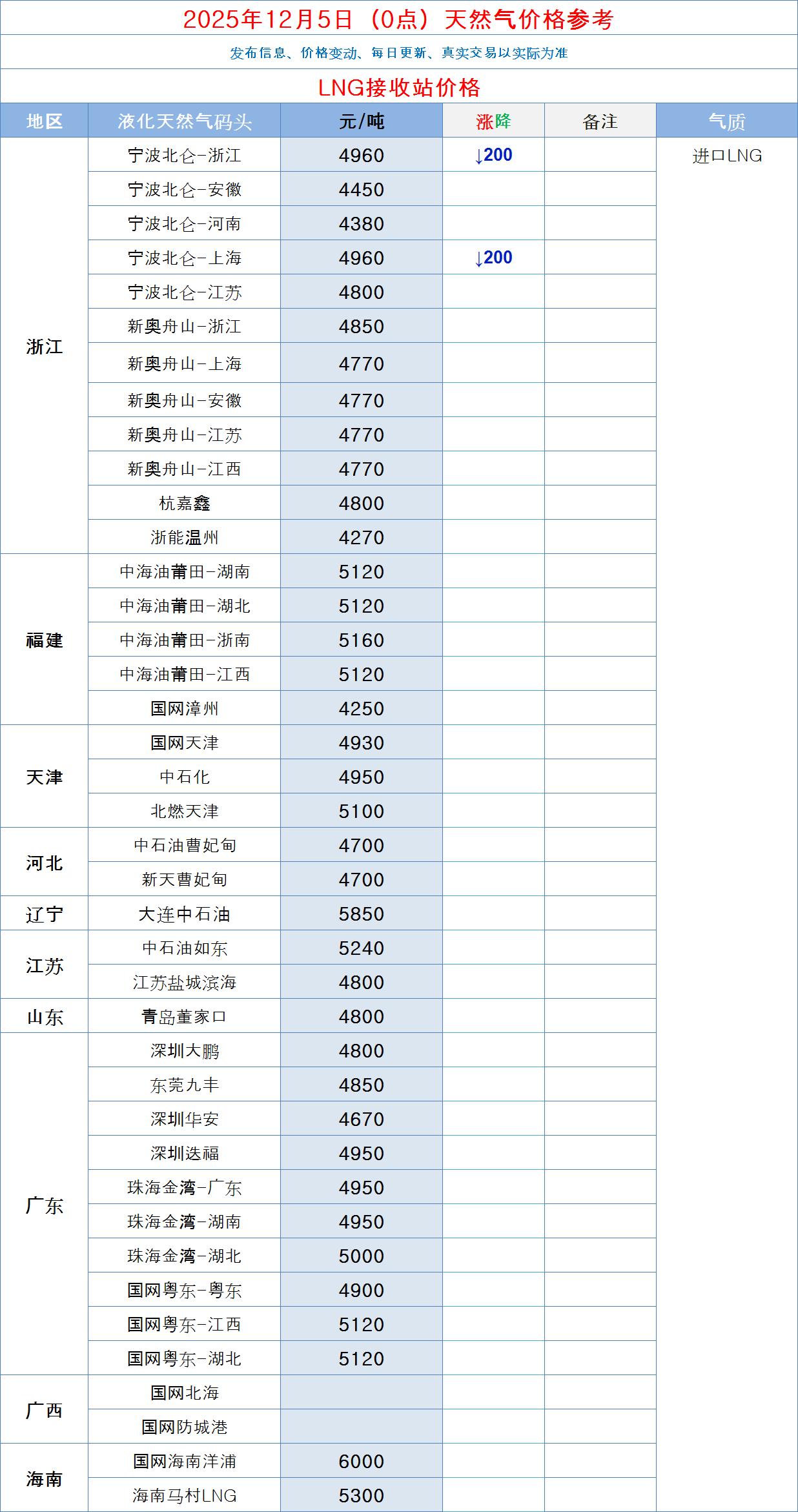 LNG天然气每日价格