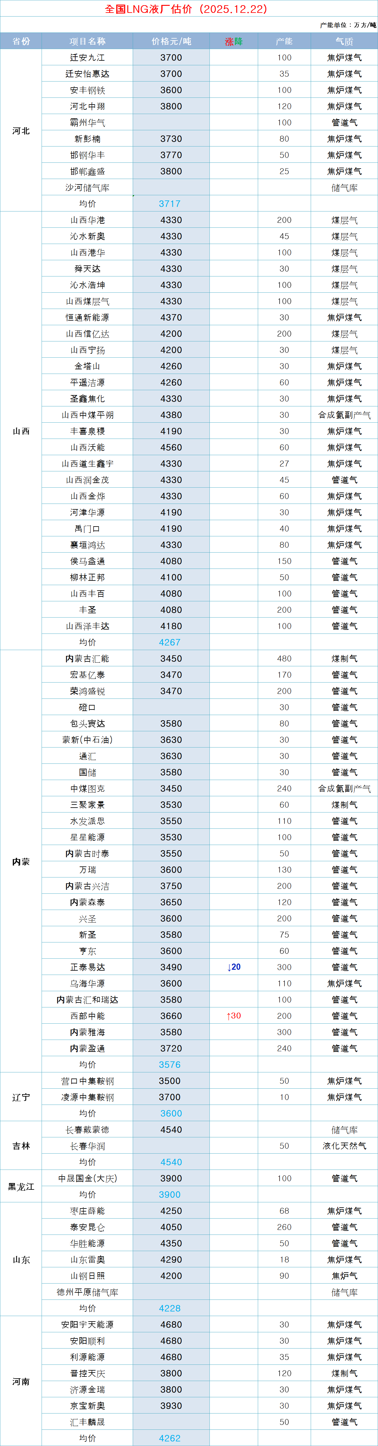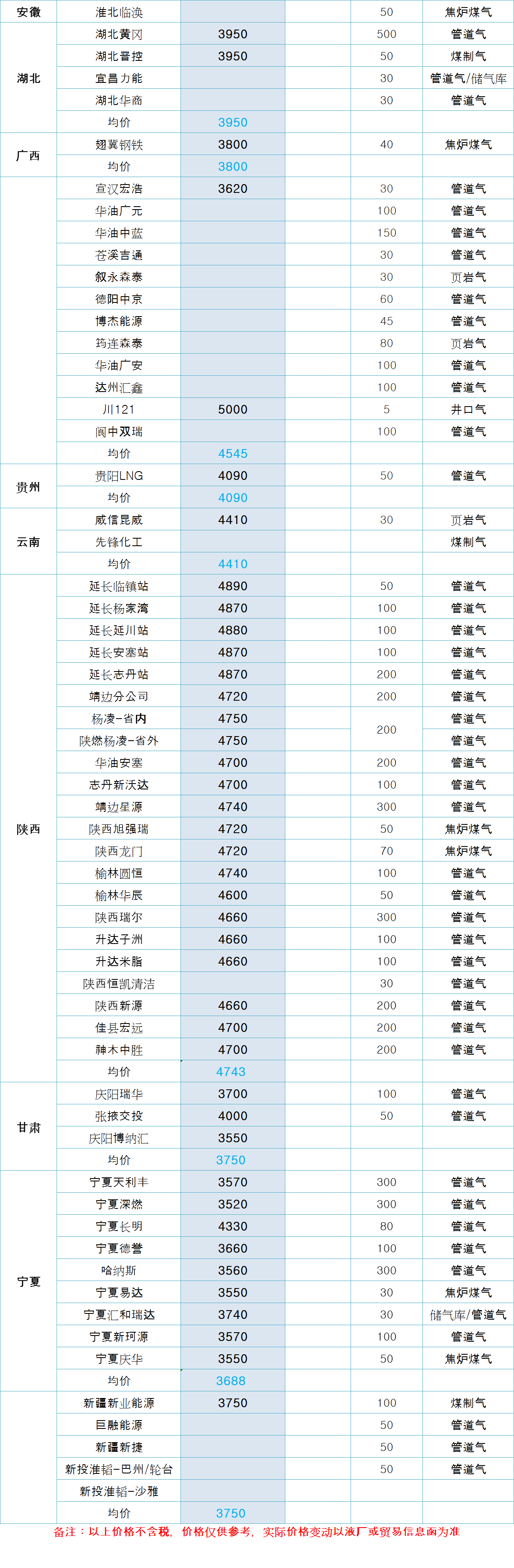 LNG天然气每日价格