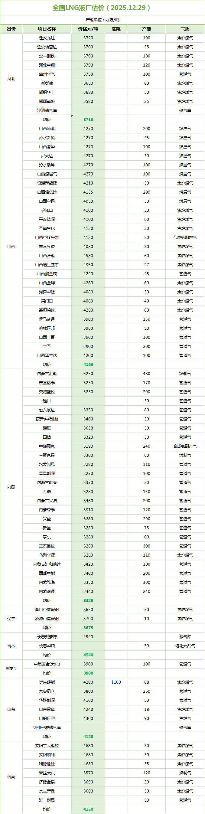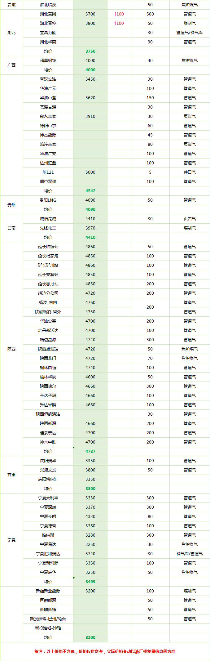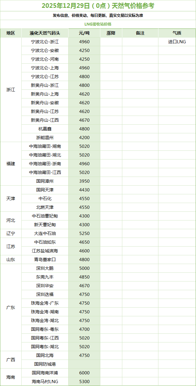 LNG天然气每日价格