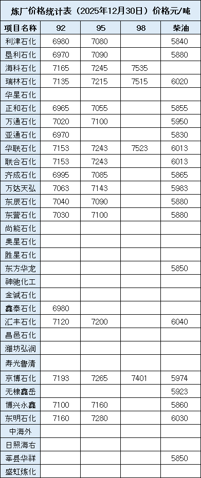 汽油柴油每日价格信息