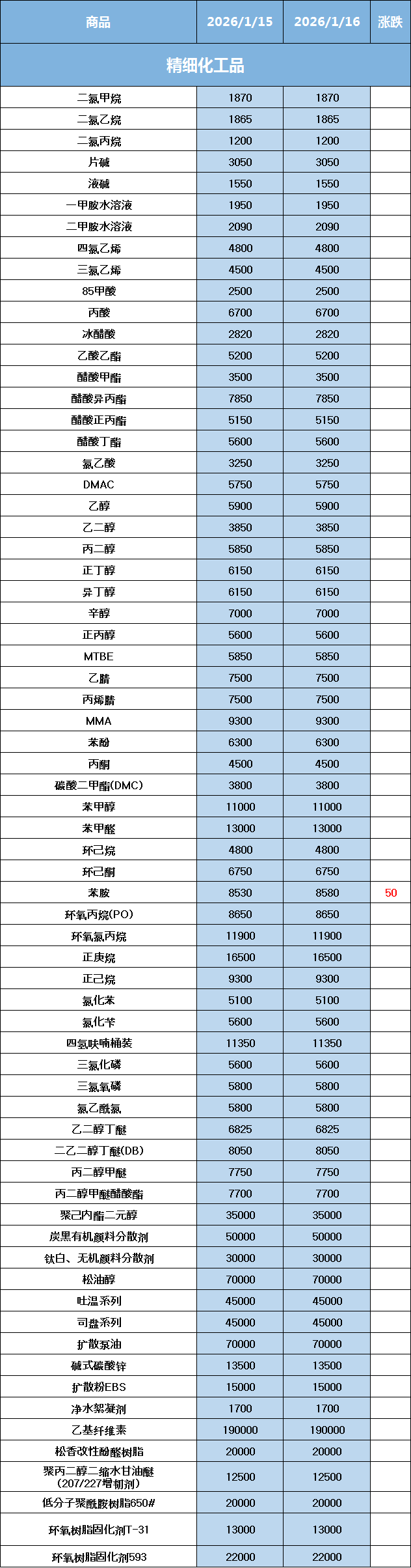 化工原料每日价格