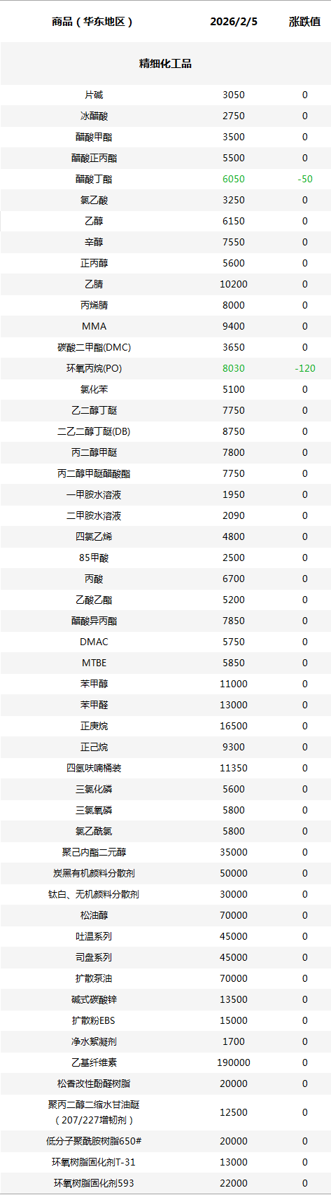 化工原料每日价格