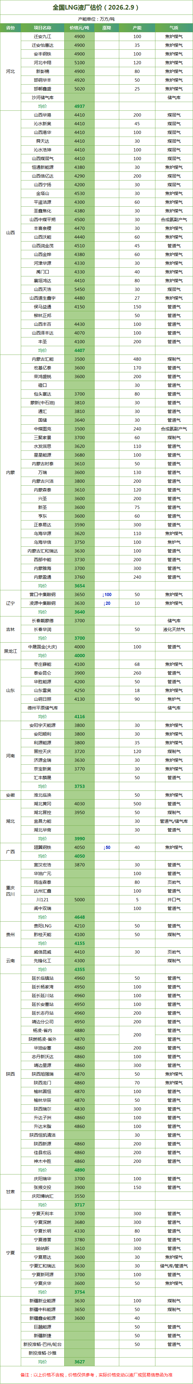LNG天然气每日价格
