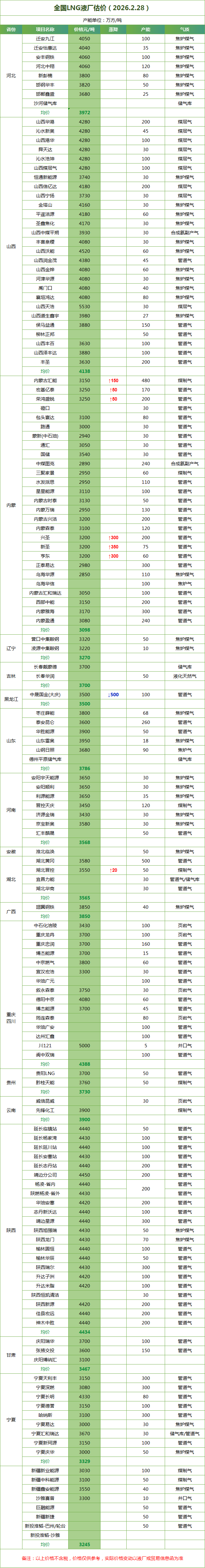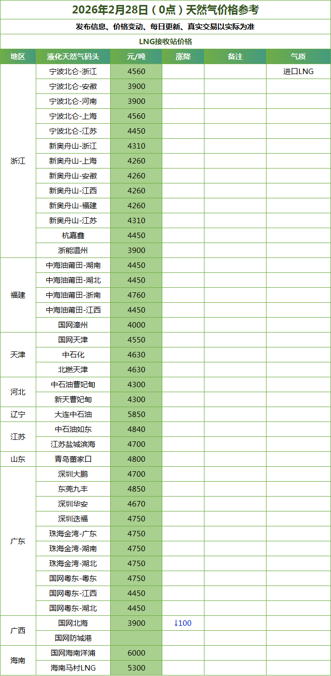 LNG天然气每日价格