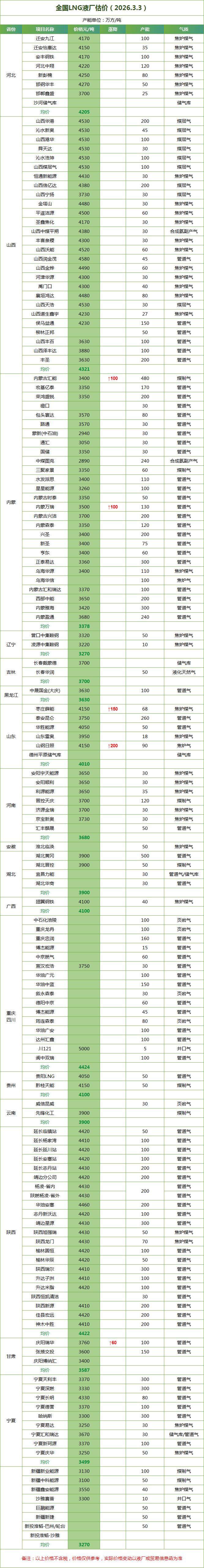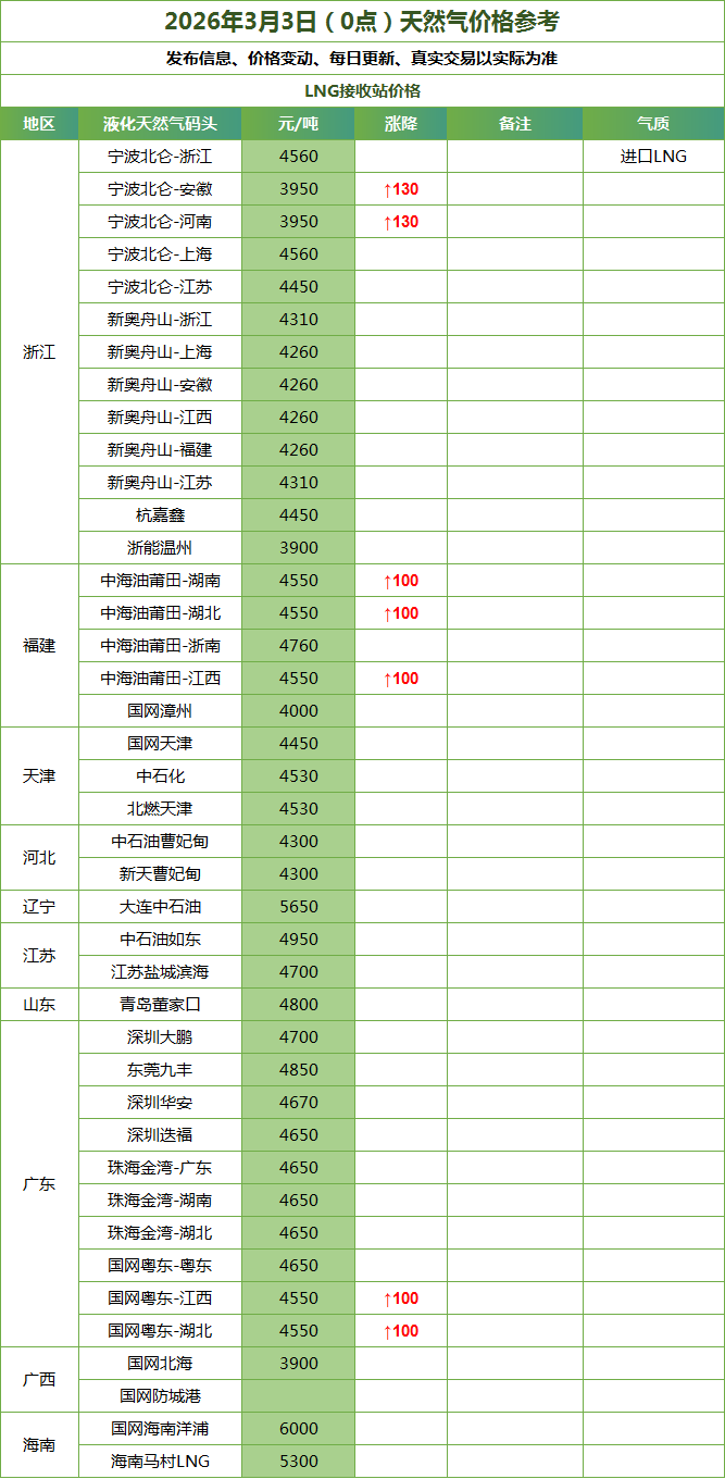 LNG天然气每日价格