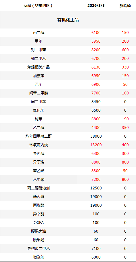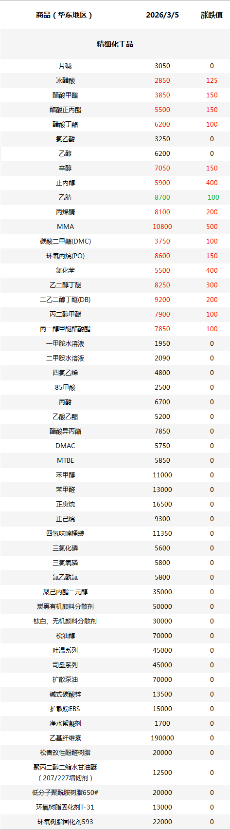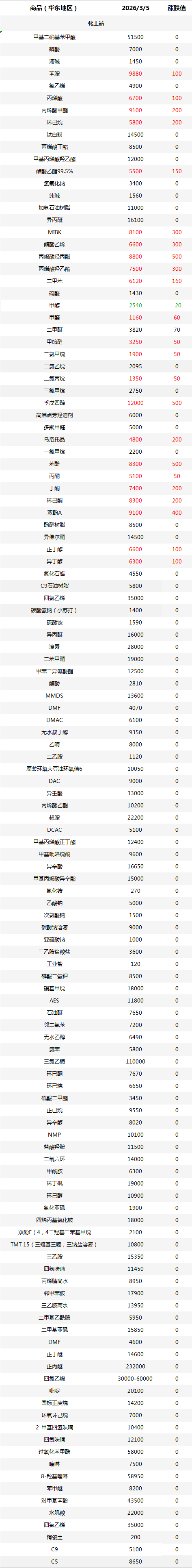 化工原料每日价格
