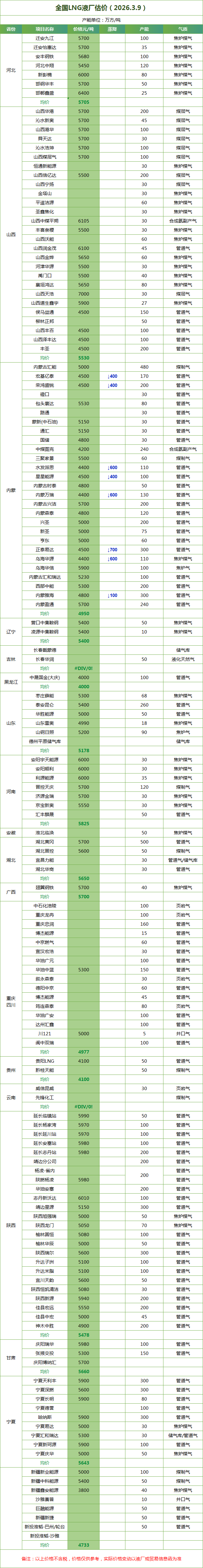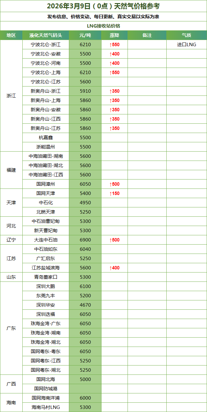 LNG天然气每日价格