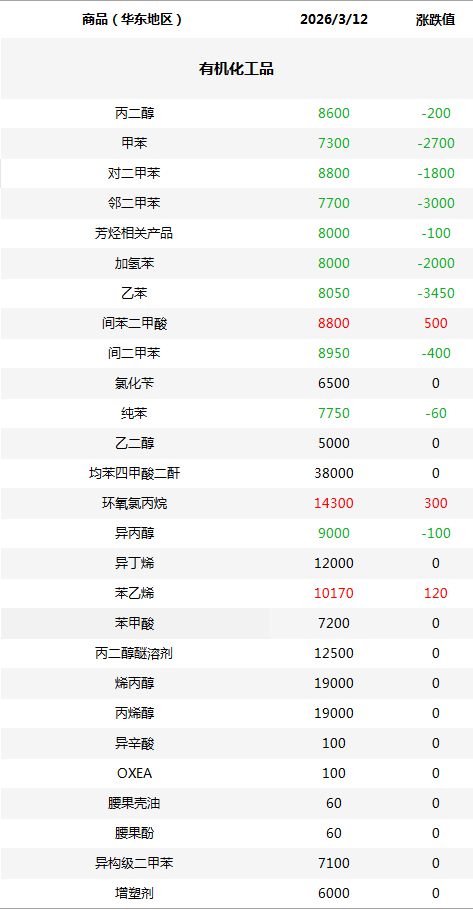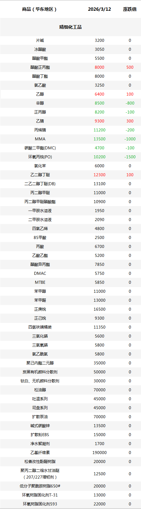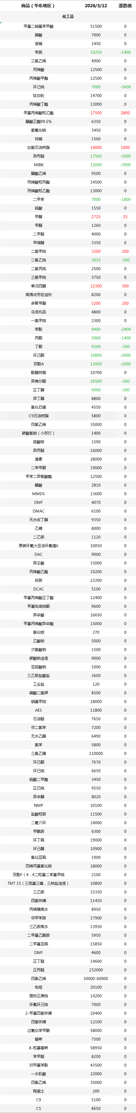 化工原料每日价格