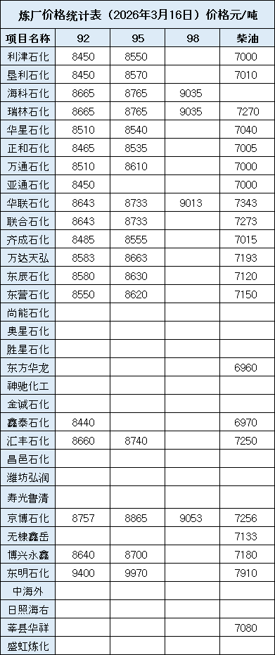 汽油柴油每日价格信息