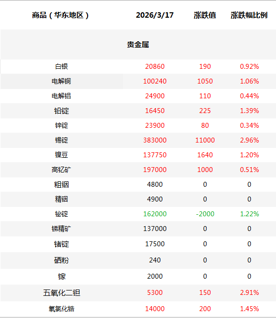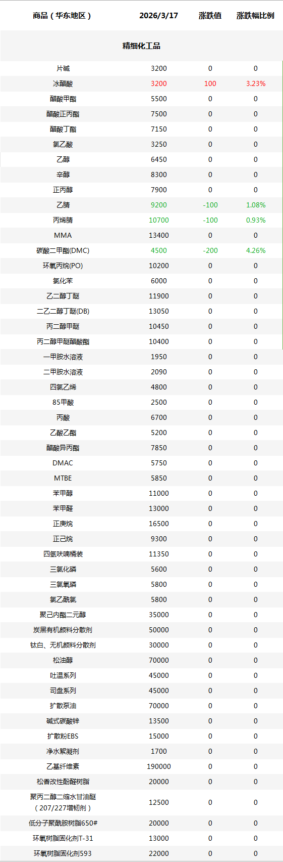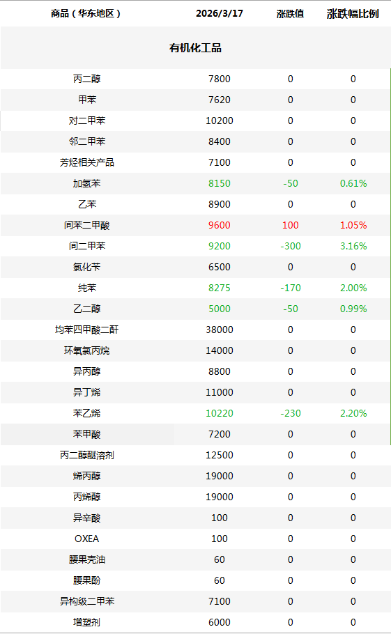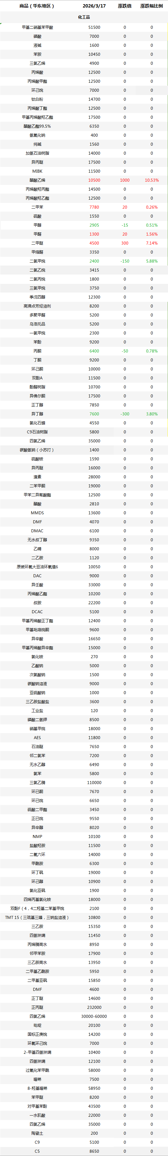 化工原料每日价格