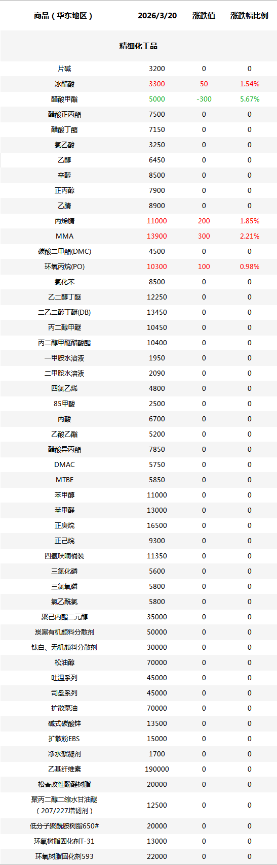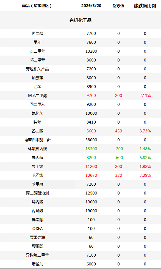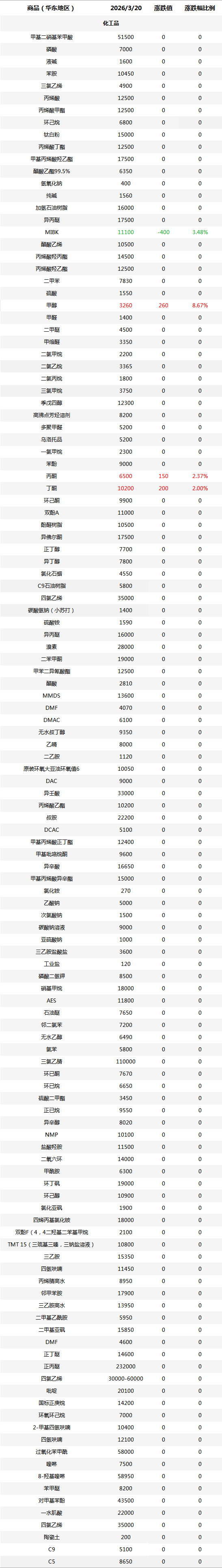 化工原料每日价格