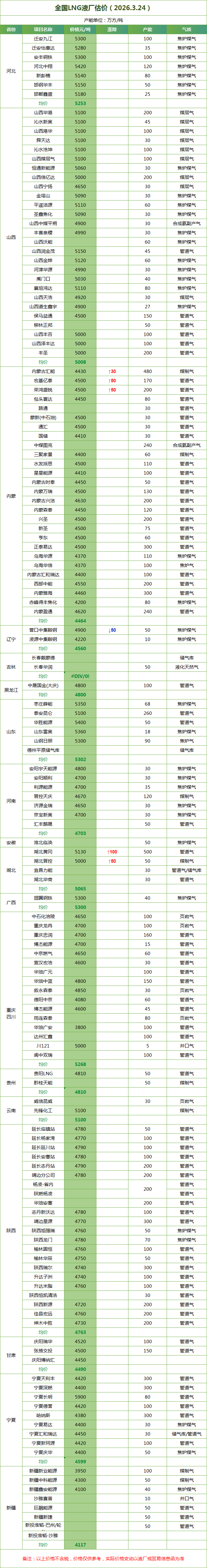 LNG天然气每日价格
