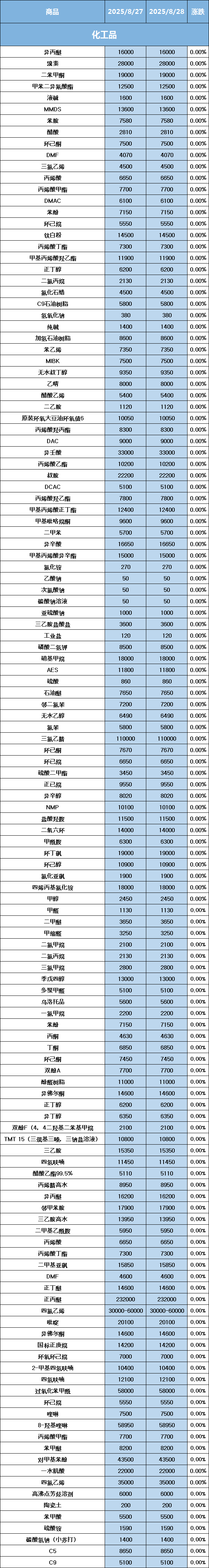 化工原料每日价格