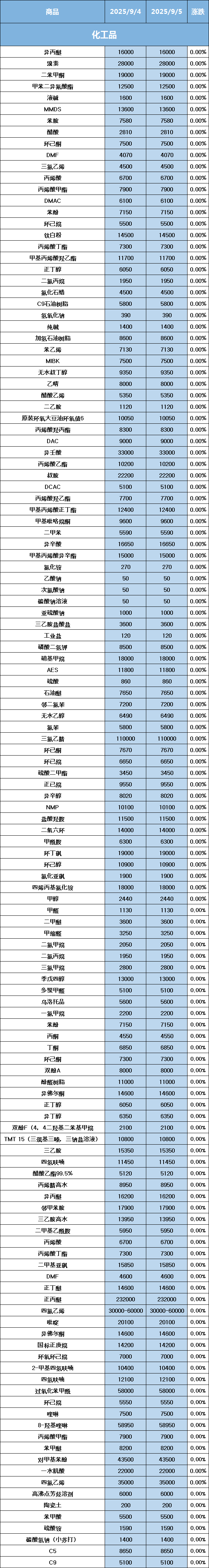 化工原料每日价格