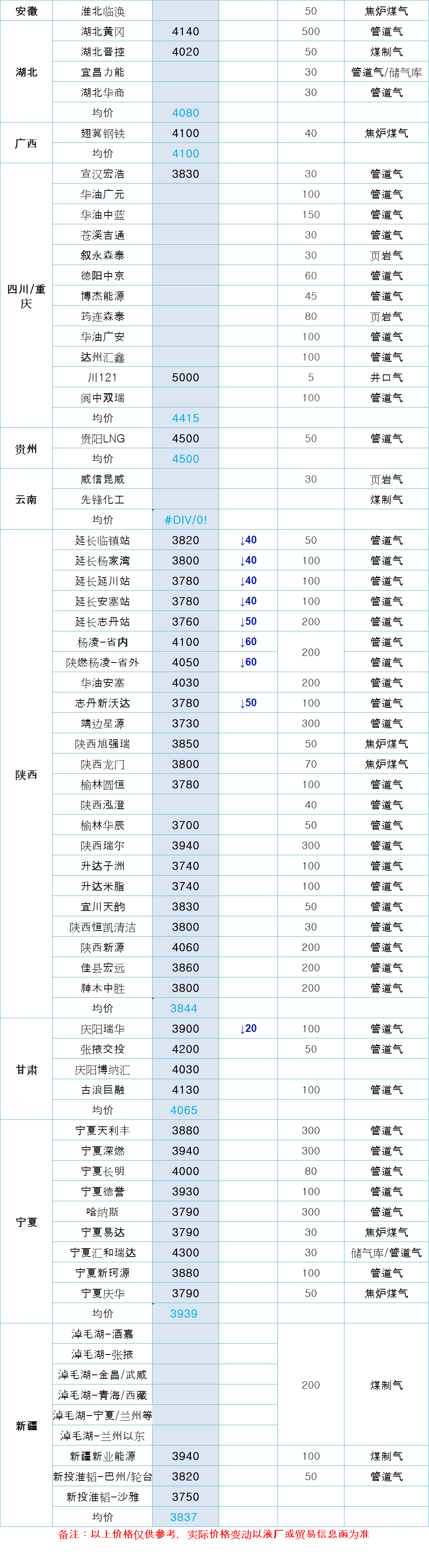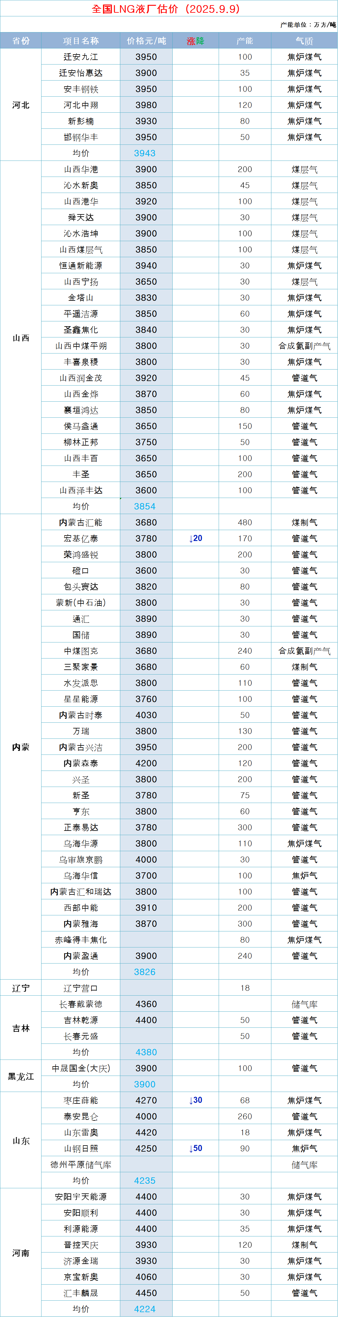 LNG天然气每日价格