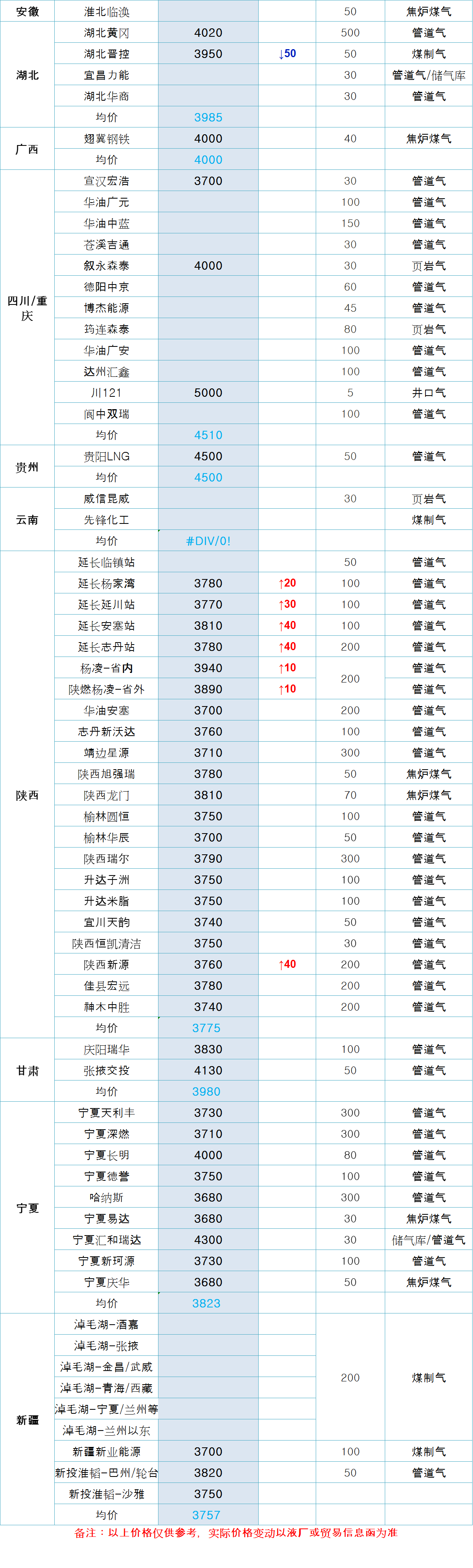 LNG天然气每日价格