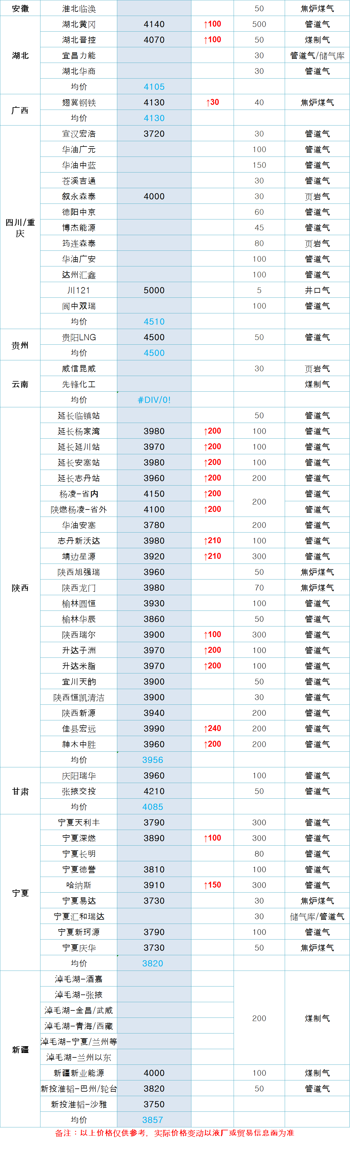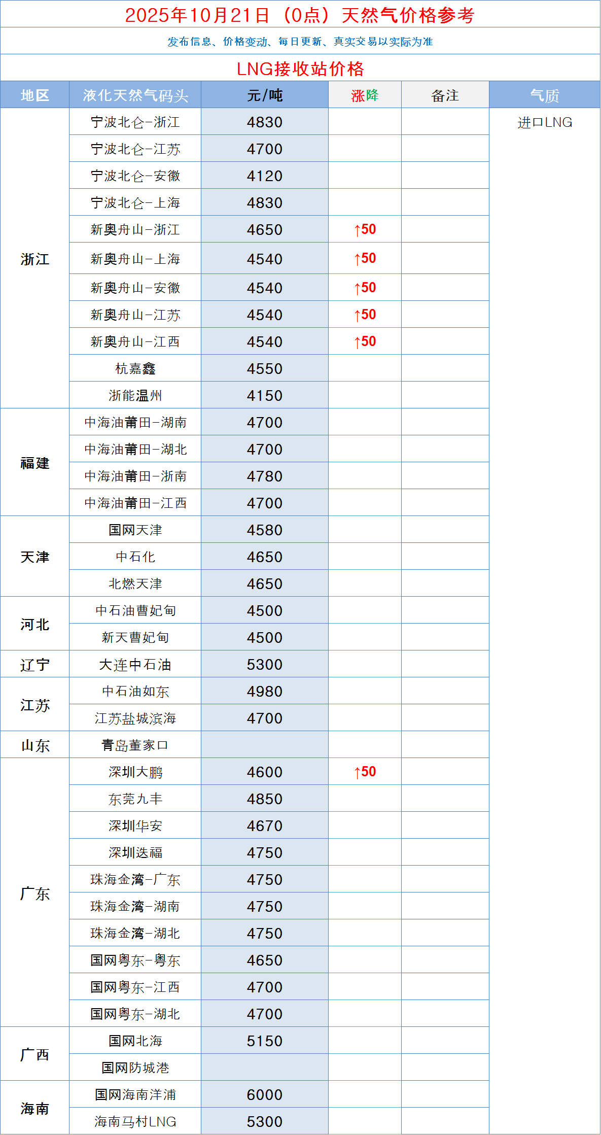 LNG天然气每日价格