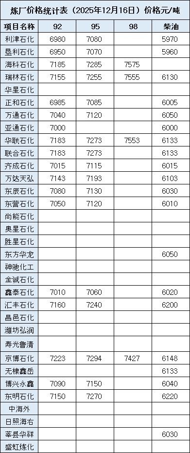 汽油柴油每日价格信息