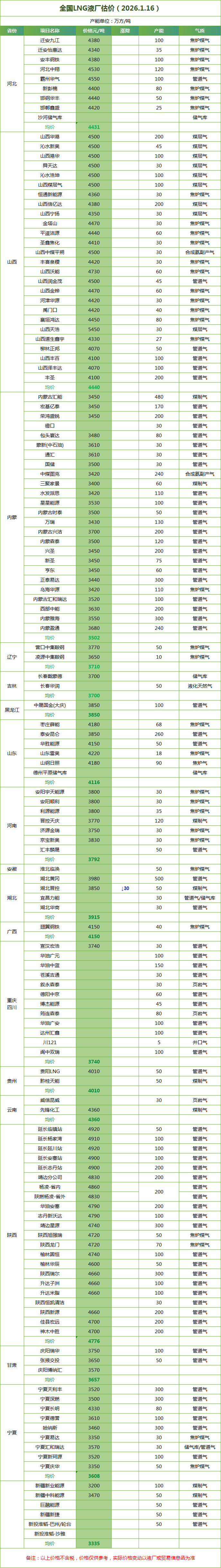 LNG天然气每日价格