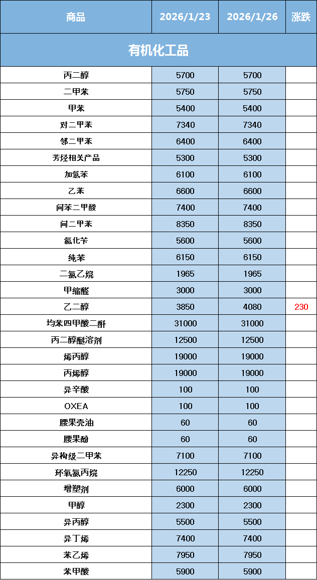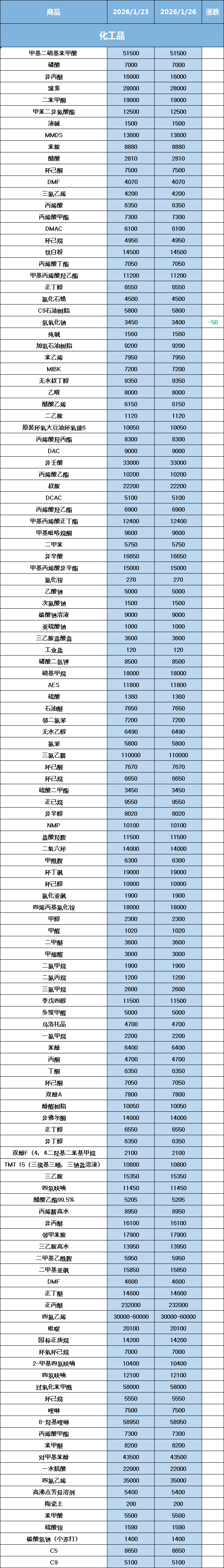 化工原料每日价格