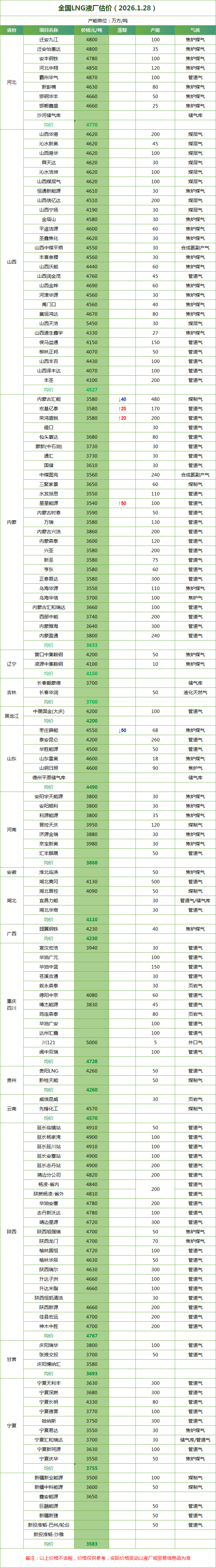 LNG天然气每日价格