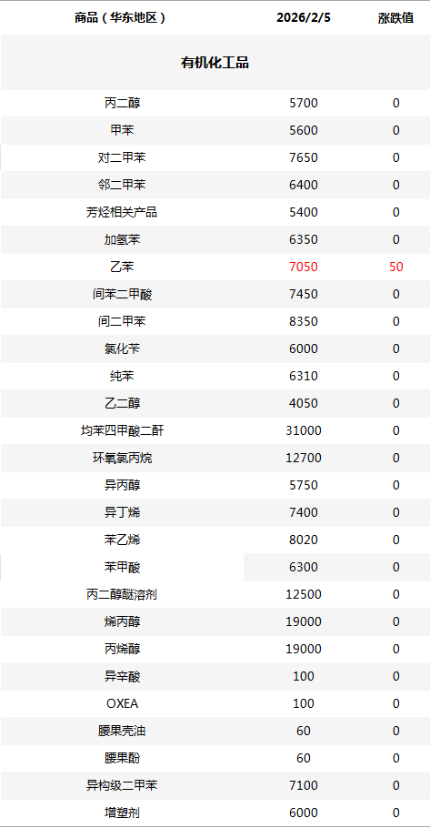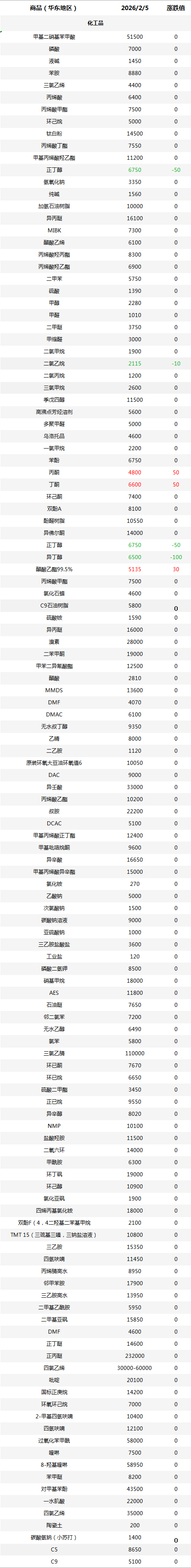 化工原料每日价格