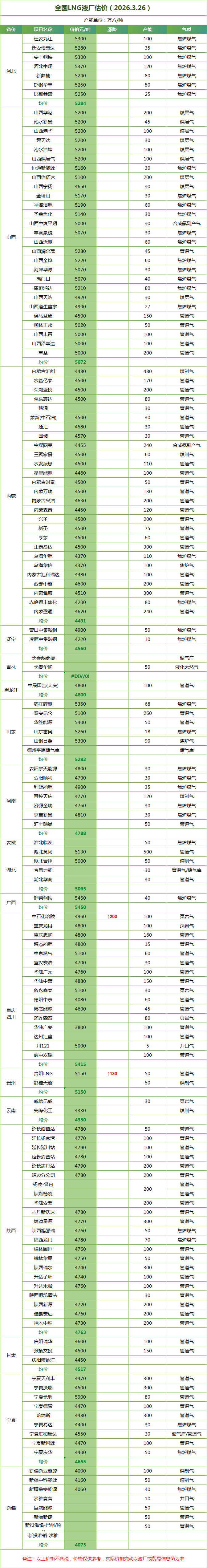 LNG天然气每日价格