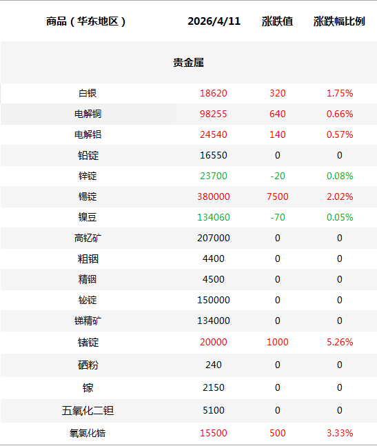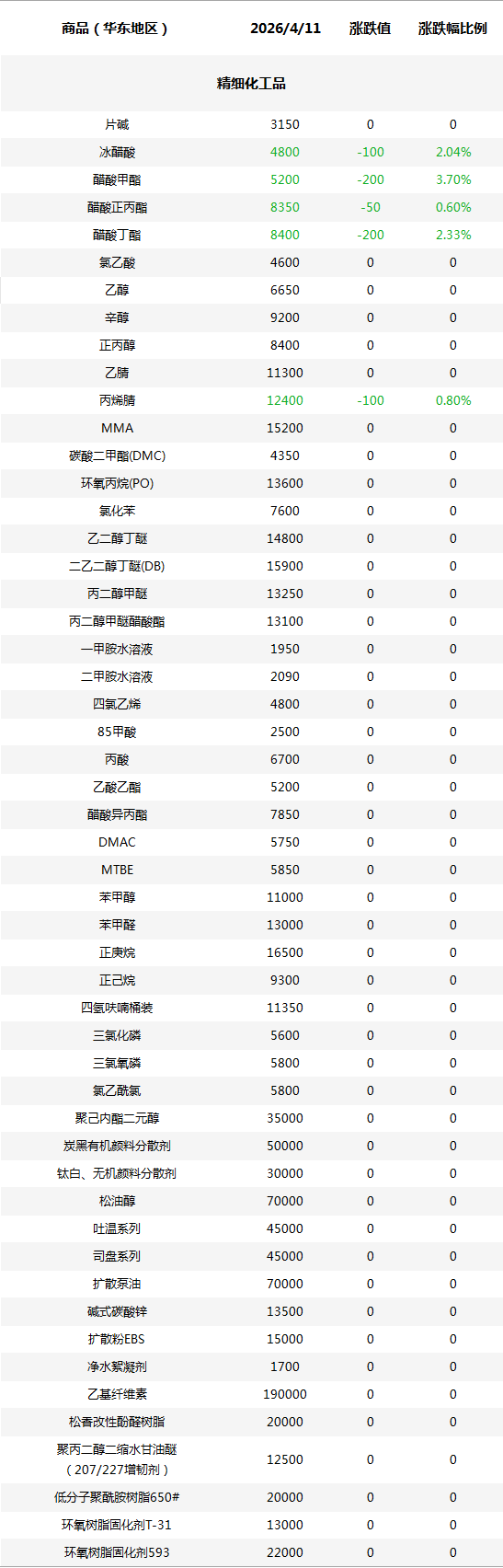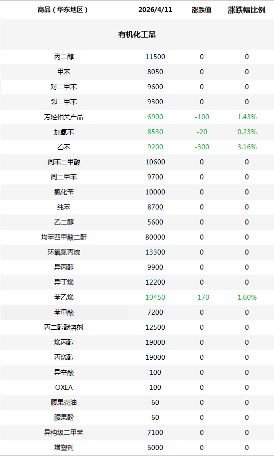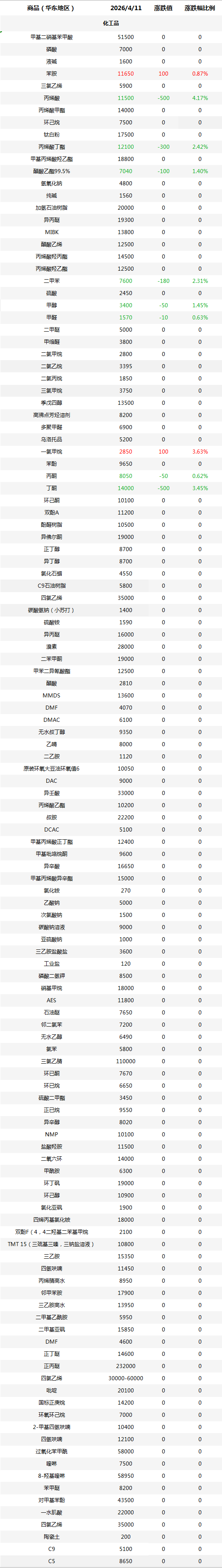 化工原料每日价格